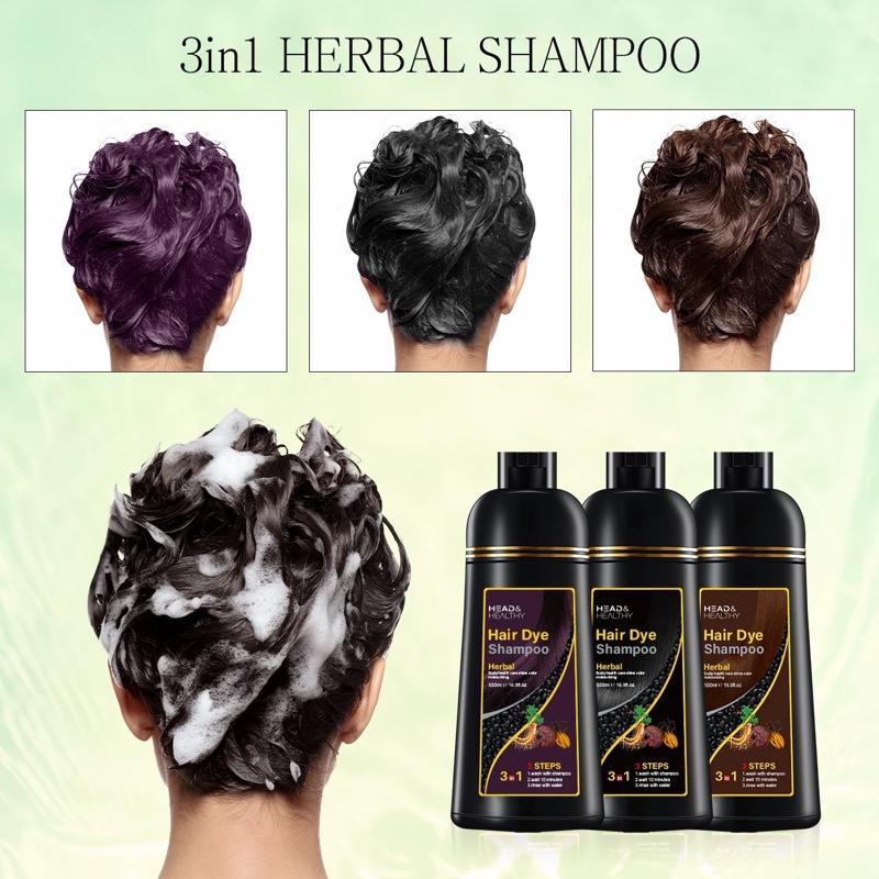 Head & Healthy Black Hair Dye Shampoo 5 in 1 Instant Hair Dye Herbal Ingredients 500ml 16.9 fl oz for Gray Hair Unisex Formula